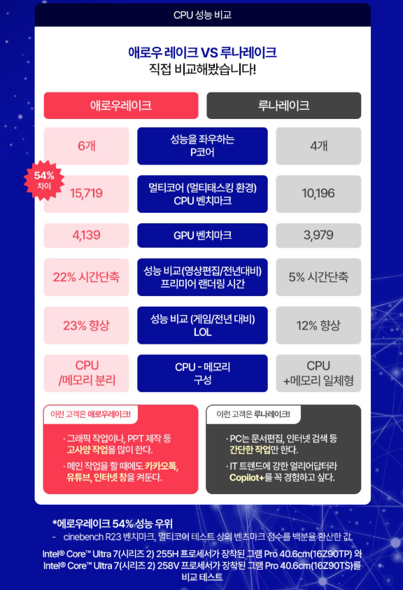 이 모든 AI 기능들은 코어 Ultra7 애로우레이크 프로세서 및 윈도우 11과 긴밀히 연동되어, 사용자 편의와 보안을 한층 더 강화해줍니다.