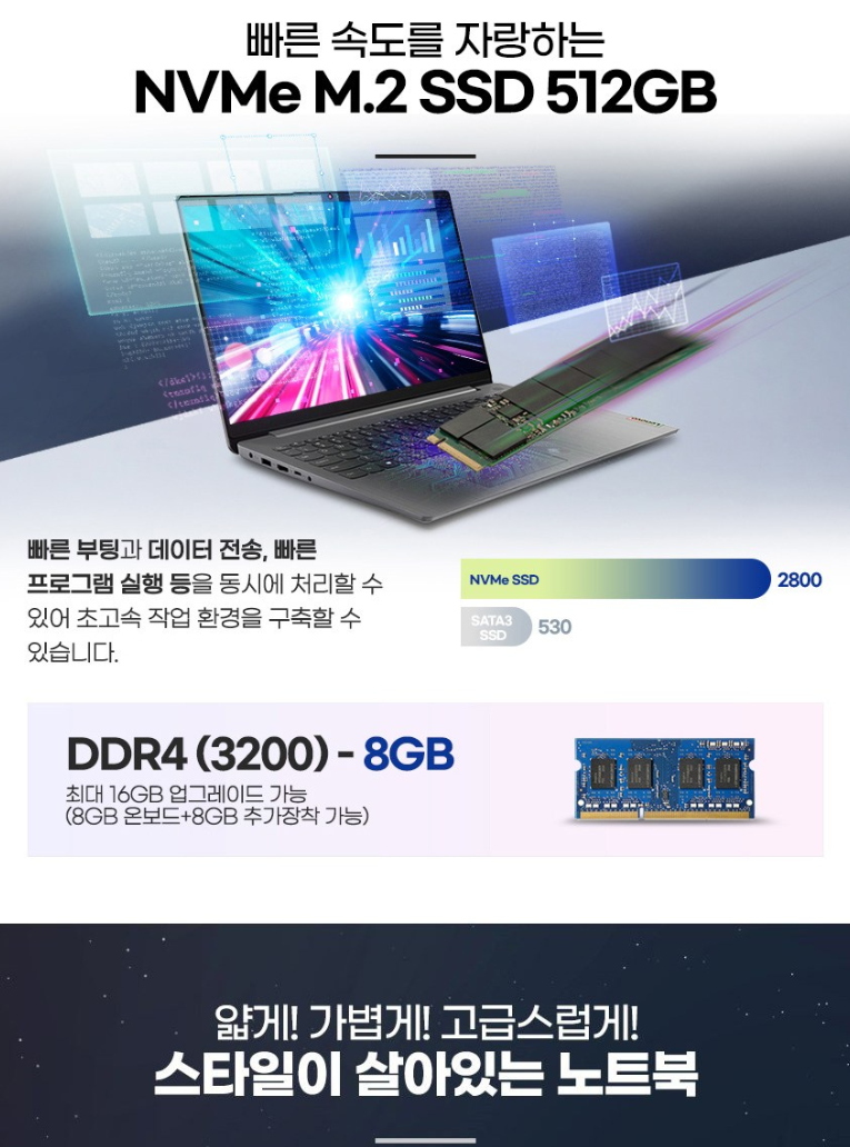 - "SSD 속도가 빨라 부팅과 프로그램 실행이 빠릅니다."