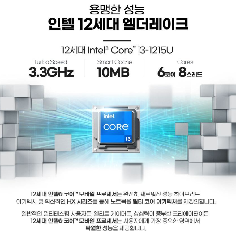 - 프로세서: 인텔 코어 i3-1215U (6코어, 8스레드)