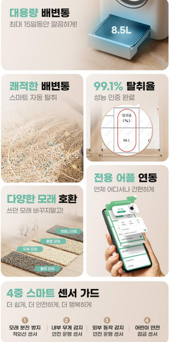 | ✔ 탈취, 무게 측정, 앱 연동 등 첨단 기능 | ❗ 일부 고양이는 적응 시간이 필요 |