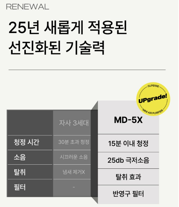 | 냄새 제거와 미세먼지 차단을 동시에 해결 | 공기 질 수치 표시 기능 없음 |