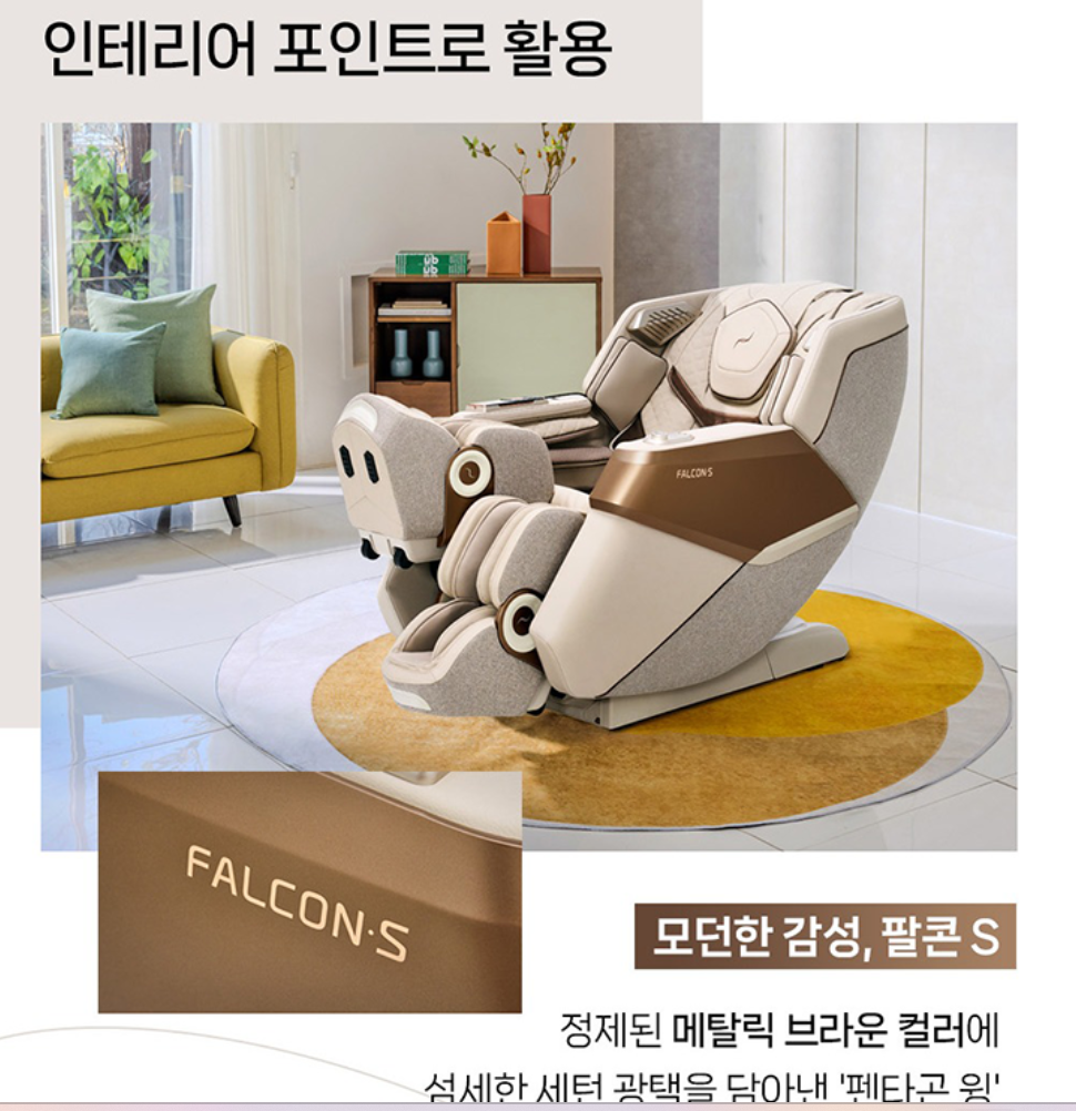 “러그까지 세트 구성된 팔콘 S는 인테리어 감각까지 챙길 수 있는 몇 안 되는 안마의자입니다.”
