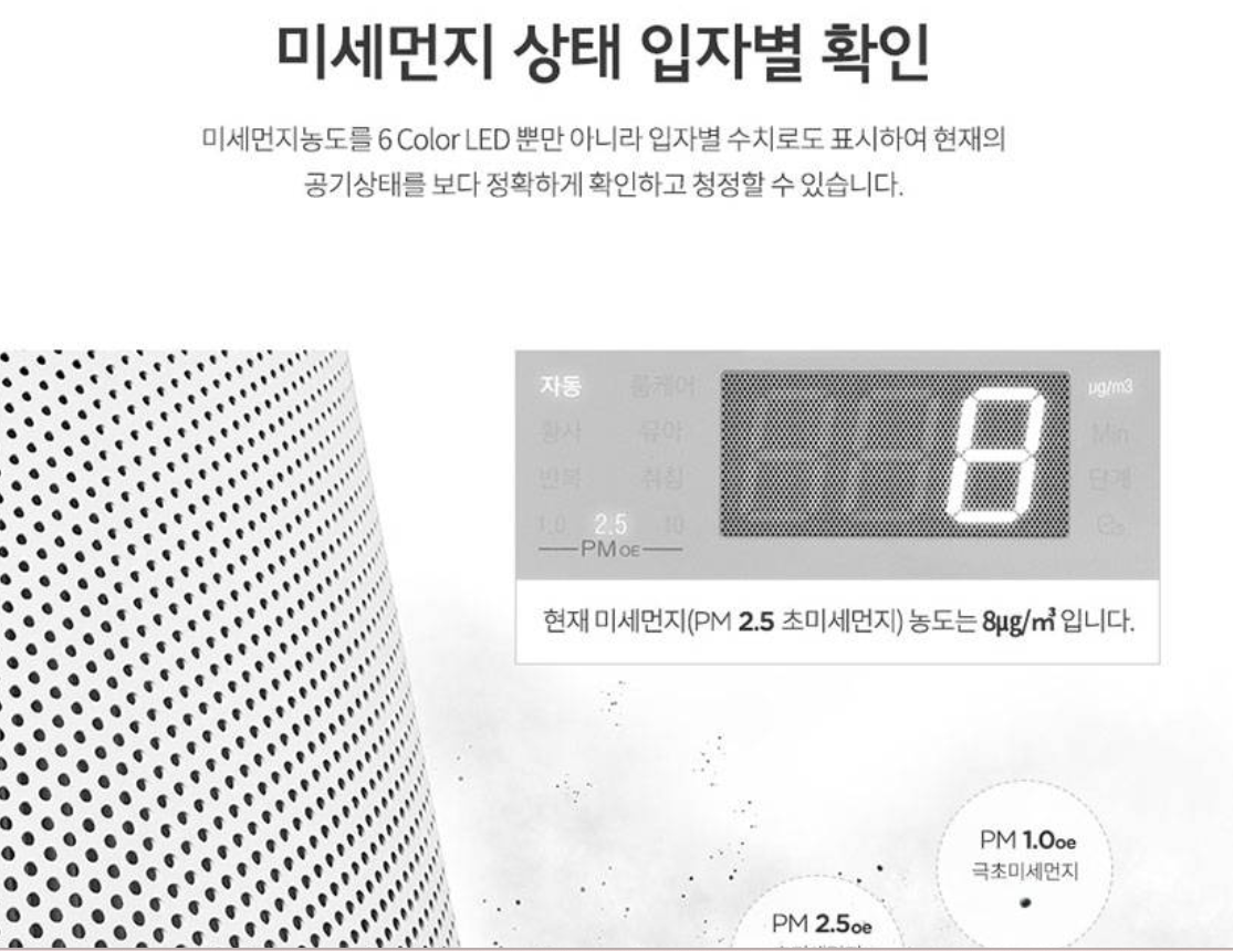 | 주요 기능 | 공기질 자동 감지, LED 상태 표시, 슬립모드 |